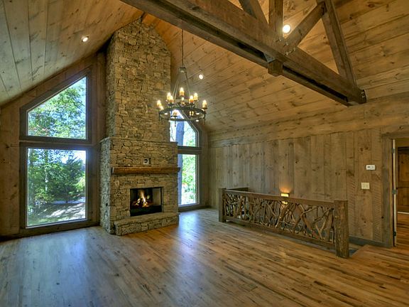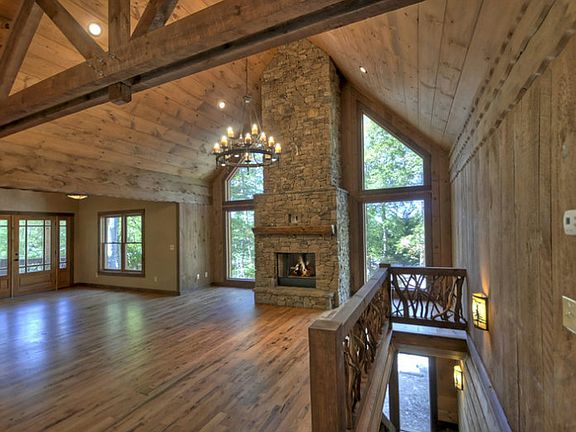 ^MODERN RUSTIC LODGE^ The only thing separating this home from Lake Blue Ridge is protected USFS land that surrounds this new construction mtn home architecturally inspired using natural earth building materials INCL. lots of stone, cedar shake, wood siding, large timbers & accented rustic tin roof. Enjoy lake living w/out paying lake prices - nature trail from home to your own private cove offers lake living at its best. Open floor plan design w/ 3BR, 3.5BA. FIN terrace features REC/Media Rm w/ "massive" Rock FP. Vaulted ceiling GR w/ exposed timbers also features floor to ceiling Rock FP. Upgrades throughout INCL. all baths have walk in tile or stone showers, wide plank flooring, mountain laurel pickets, rustic designed vanities w/ granite rock vessel sinks in master, lg. covered "party porch" w/ outdoor Rock "wood burning" FP, private balcony from master suite & surrounded by USFS. 11/16/15