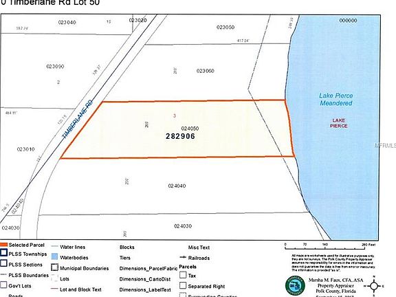 This is a 3.4 acre lakefront lot on Lake Pierce. Has some wetlands but county says it is buildable. Some fill will be needed at actual building site. Wooded.