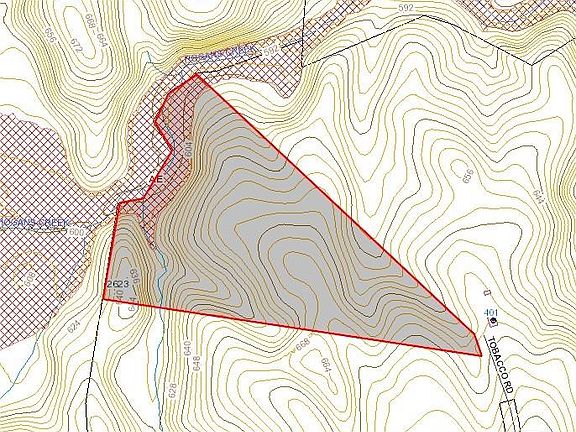 17.474 acre lot being cut off of larger parcel.Recently recorded survey/plat map on file.Rustic cabin (with power) "Sugar Shack" with expansive deck that overlooks,magnificent, Hogans Creek (which is large flowing stream). This lot has another feeder stream that joins near cabin. Combination of cleared open fields with wooded areas and areas that have been "select" cut. Abundant trails. Excellent lot for custom built home. Tobacco Rd is state maintained. Beautiful views of nature/farm land, yet easy access to Highway 220/I-73. Minimal deed restrictions to be added. Serenity awaits you in this prime location. Abundant wildlife including white tail deer and turkey.