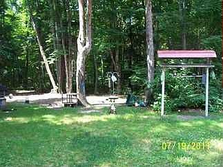 Very well built 2-3 bedroom cottage situated on wooded 3.7 acre site - wildlife galore in your back yard, access to 3 lakes, pump house building, detached oversize 2 car garage with guest sleeping quarters in upper level. Main structure built in 1994-95 is cedar D log with cathedral ceiling and stairway to 2 upper level (non conforming) bedrooms, 2 LP fireplaces, kitchen with loads of cabinets and wood plank flooring; addition built in 2003 has LR and 1st floor bedroom (one of the upper level bedrooms was added with addition). Home is immaculate and purchase price will include all appliances, Honda 3500 Watt generator, owner owned LP tank; plus most of the furnishings are also available for purchase. Directions cont: continue to Tom's Road, turn L and continue to fire #N2855 on the Right.