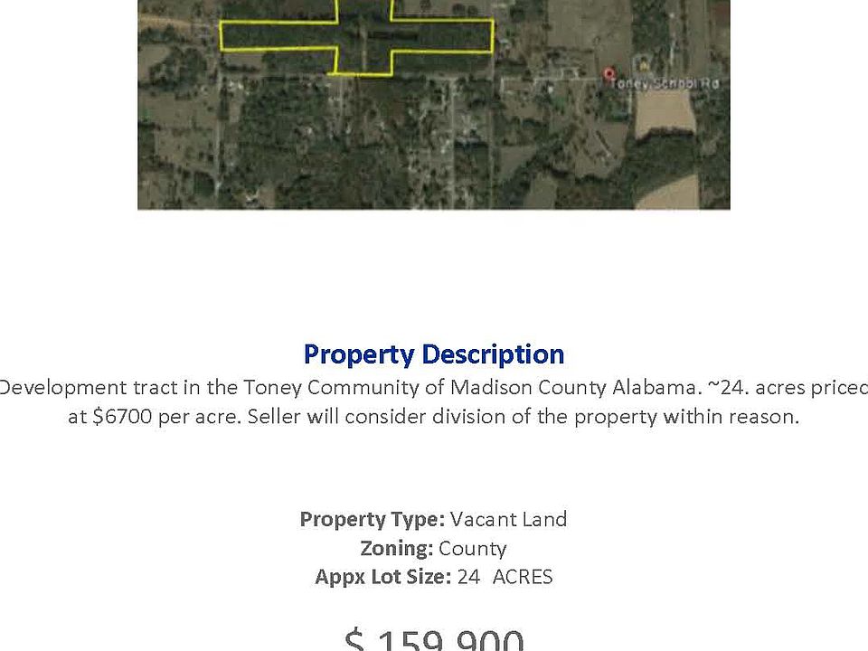 24 acres! Ready to build with road frontage on Dan Crutcher, Toney School and Tibbs road. Gently rolling.