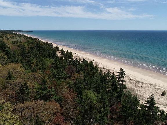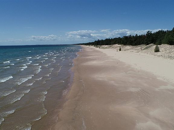 One of Lake Michigan's greatest treasures is found on its north shore in southern schoolcraft county. A large wilderness tract of 292 acres and 10,000 feet of lake-frontage has been preserved by a small number of long term owners with a limited number of larger tracts to be sold. The parcel offered for sale as part of that tract is approx 55 acres and has 1,400' of lake frontage. One gated entrance provides access to the entire parcel which is located on Top O' the Lake Road, a private road providing good access to the parcel. This single point of access will create a private, secure, quiet oasis for a select few adventurous souls willing to leave the beaten path and head north. The original property boundary include 3 adjacent private owners and about 3,000 acres of state land. The south facing beach is one of the finest freshwater beaches in North America and the sand is soft and plentiful from the wide sandy beach to the grass covered dunes. Deer, birds, raccoons and other forest dwellers roam the oak covered hills that are interspersed with towering white and red pine stands. Interdunal wetlands are found away from the lake where you can hike and find native flowers and plants. The existing home and site can serve as your cottage get-a-way, guest quarters or remodel to make it your home. The home is approx 1800' and is a 3/2 with attached garage and a separate detached 2 car garage. There are several exceptional building sites on the 1400' of private frontage with electric available across the entire tract. The parent tract is 2 miles wide and is part of a 7 mile stretch of sandy beach that is waiting for you!