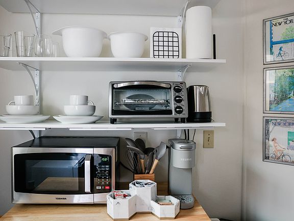 Quiet neighborhoodComfy reading nookTwo nightstandsKitchen areaExpandable table