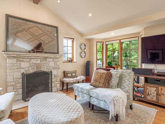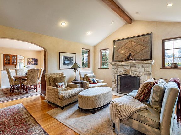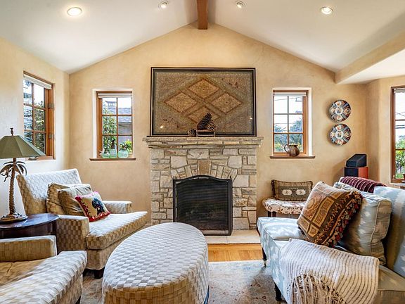 Joyous Carmel cottage built in the 1930s by an apprentice of M.J. Murphy and taken down to the studs and fully restored in 2001. Three bedrooms, two baths, Mission-style faux finish walls, arched doorways, hardwood floors, formal dining room, Carmel Stone fireplaces in living room and master bedroom, gourmet kitchen with Viking stove and Sub-Zero refrigerator and ample storage; his/her closets in master. Master bath has jacuzzi type tub. South facing deck and patio make for outstanding out-door entertaining areas. Easy walk to town. A touch of paradise & convenience in Carmel by the Sea.