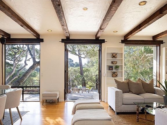 Tucked away on a quiet street yet located just several blocks from downtown Carmel-by-the-Sea, this 4-bedroom, 4-bath, 3,700+ sq ft home offers the perfect pairing of privacy and convenience. With lovely mountain and forest views, majestic oaks, and mature gardens, the parklike grounds cover nearly 1.3 acres and feel special in every sense. A spacious stone terrace and private, sun-filled courtyard complement the light and airy interior, which features three en-suites, a wonderful, open-beamed living room with french doors, and an expansive kitchen. Including three separate lots and APN numbers, and ideally sited close to all that downtown Carmel has to offer, this unique and irreplaceable opportunity is not to be missed.