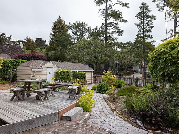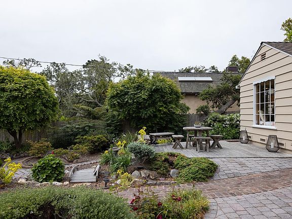 its 91 years. The home has been in the same family since 1986. Sited on an oversized 6,000 square foot lot with full sun exposure, the property enjoys a large garden enclosed by an idyllic picket fence. The original home was added on to in 1959 and then again in 1994, yet the characteristic charm of Comstock remains with the open beamed ceilings, a copper fireplace mantle and parquet white oak floors. This single level home is just a short stroll to downtown and a step back into the bohemian past of Carmel's yesteryear.