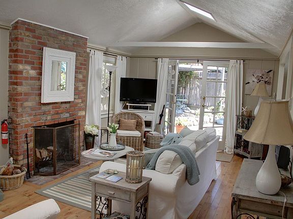 Please Do Not Disturb Tenants or Go Onto The Property Without the Listing Agent **Available for Long Term Rentals only. The rate is $4,280 per month for 6 months or more. The living room has a wood-burning fireplace, vaulted ceiling with skylights, wood floors with area rugs. There is a fully-equipped kitchen with a gas stove, dishwasher, microwave and side-by-side refrigerator. It's an easy stroll into the village of Carmel to explore the shops, galleries and world-class restaurants. The master bedroom has a California king bed with memory foam topper that can be converted to two twins. The second smaller bedroom has a queen bed. The bathroom has a combination bath/shower. Well-behaved dogs are welcome at this property. The paved driveway is long enough to accommodate 2 cars; there is street parking for up to two cars as well. A gas grill is provided for outdoor cooking. Outdoor access to washer and dryer.