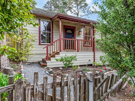 A lovely Carmel Cottage on a quiet street offers a spacious corner lot, 3 bedrooms, 3 bathrooms plus a bonus room off the two car garage. Beautiful eat in kitchen with granite counter tops, new stainless steel appliances. Master Suite on main level with a light, bright spacious living room with vaulted ceilings. Downstairs has its own private entrance and is set up as an efficiency apartment with a small kitchen, large studio including enough room for a bed, sitting area and full bathroom. The covered front porch is great for watching the sunset. This is a true Carmel gem.