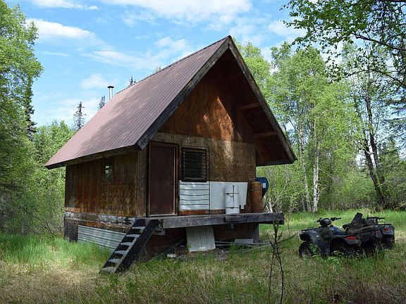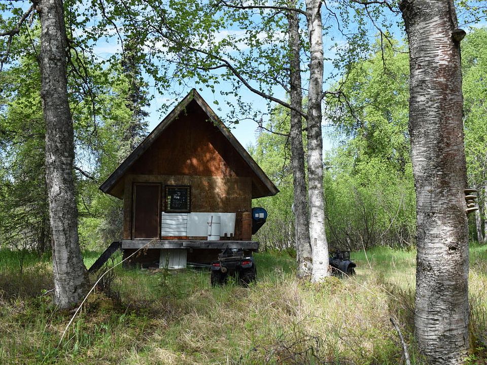 Extremely well built cabin only 1.3 miles via trail from Petersville Road. Beautiful & private setting. A snow machiner's dream (fun in the sun, too). Metal roof. Propane stove. Oil heat. Functional kitchen. Set on metal pilings. Two sets of bunkbeds, sleeper sofa, loft for add'l sleeping - everything in cabin conveys w/ sale. Trail has been very well marked so should be easy to locate! See photosMartin Buser has a neighboring lot! Great for dogs and sleds! 36" solid entry door Metal Roof Built in 1992 3/8 plywood siding Kitchen = gas stove RV toilet Oil Stove for heat Sheetrock/paint 2 propane light fixtures 4'x8' folding table Sleeper sofa Gas powered generator Aluminum holding tank for toilet Blueberries!! 4x6 beams 3' pipe pilings Lot slopes to creek 4-wheeler .. snow machine .. walk in -- it's only a mile from the road.