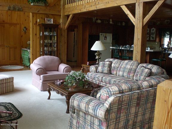 SUNNY AND BRIGHT DESCRIBE THIS MAGNIFICENT COUNTRY POST & BEAM HOME HAS CEDAR SIDING &CEDAR DECKS, CHERRY CABINETS, BEAUTIFUL STONE FIREPLACE, HARDWOOD FLOORS, 4 BEDROOMS, 3 BATHS, & FULL FINISHED BASEMENT. mINUTES FROM GAME LANDS, WHITE WATER RAFTING, SKIING, WATER PARK, POCONO RACEWAY, CASINOS & NEW TURNPIKE ENTERANCE TO BE OPEN SOON. CHECK OUT OUR PHOTO TOUR!