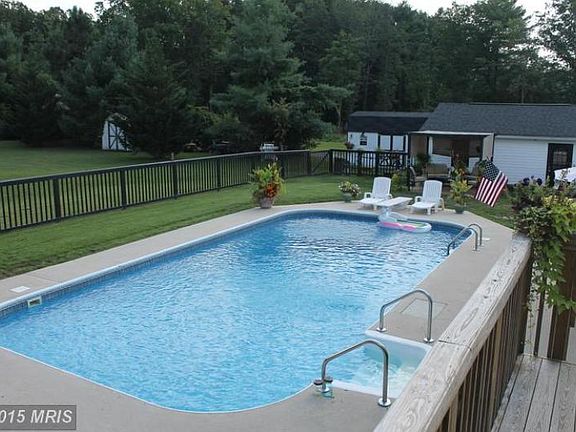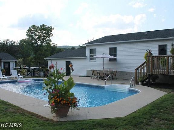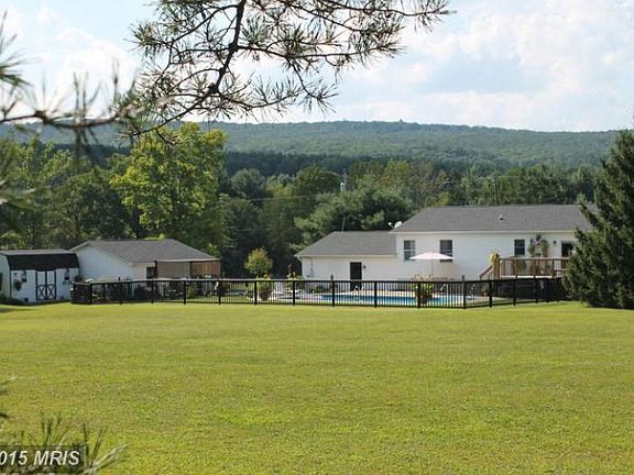 Beautiful 3+ bedroom, 2 bath split foyer on 6.53 acres with attached 2 car garage and 2 car detached garage. Has 2 sheds for storage with nice pool and backs up to George Washington National Forest. Nice level area with mountain views. Located just 2 miles from Wardensville, WV.