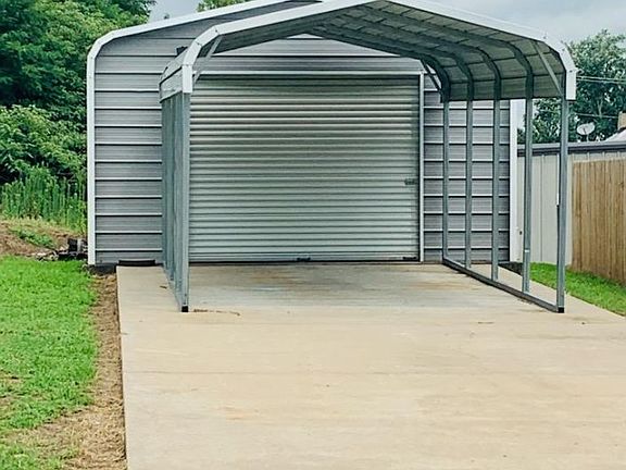 Extremely versatile 10'x20' Metal Storage shed with overhead door. Additional high grade metal covered 12'x18' carport awning on a solid 12' concrete slab. Total lot size 17'x21'. Could be used for a variety of functions. C-3 Zoning.