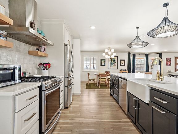 Sitting on nearly an acre lot, this home is both serene and safe while close to popular coffee shops, restaurants, and shopping. The backyard hosts various growing fruit trees, pine trees, an impressive vineyard, patio lounge seating, a fire pit, a playset, and a trampoline.