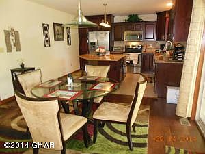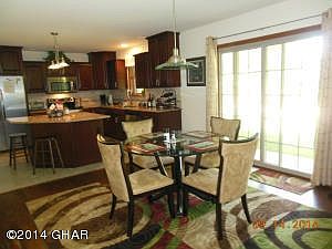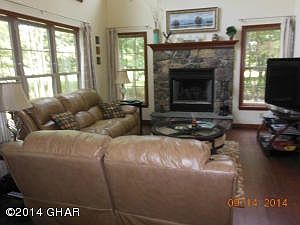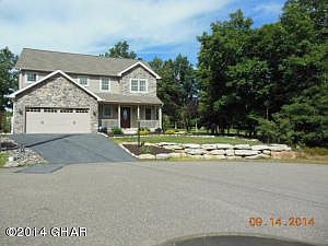 LOVELY 2 STORY STONE & vinyl home overlooking Golf Course,walking distance to clubhouse.Modern kitchen w/all appliances,granite center island,cherry hardwood floors,dining room & living room with stone fireplace & patio doors to brick patio,1st fl.laundry and full bath.Full basement ready for finishing,2 car garage,3 bedrooms,2 baths on 2nd floor covered deck off bedroom.Gas & electric heat,cen.ac
