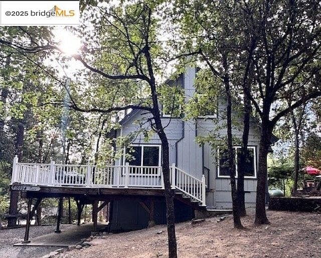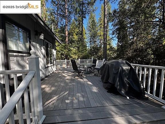 This is a very comfortable chalet style home within walking distance to downtown Twain Harte. Split system heating and air make this a perfect year round and full time home, or for short term rental this home has been very popular with good history of rentals. There are two large bedrooms and a full bath upstairs, and the main level has it's own main bedroom and full bathroom with tub. The kitchen has a breakfast bar and nice open work area with well lighted window over the sink. The living area is a great room with open dining area that has convenient exit door to the 2 level deck, making it an awesome summer barbecue for either indoor or outdoor cooking with easy access to dining inside or outside. Very cozy atmosphere to the living area with a stone fireplace and propane insert. No problem staying warm during those winter months. The house has ample paved parking for at least 4 vehicles, and a finished basement with full laundry and work space. This is a mountain retreat ready for move in. The furnishings are in great condition and can be negotiable in sale. Twain Harte Lake eligible property.