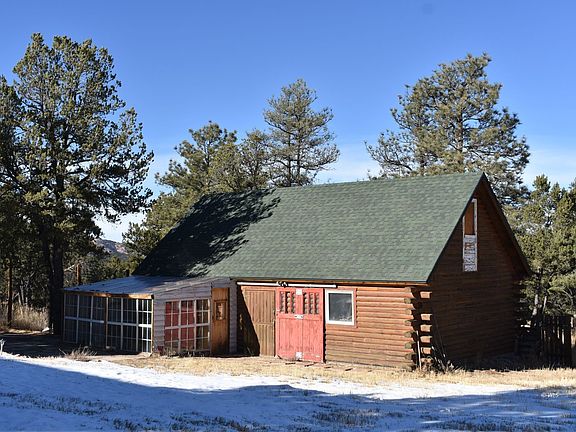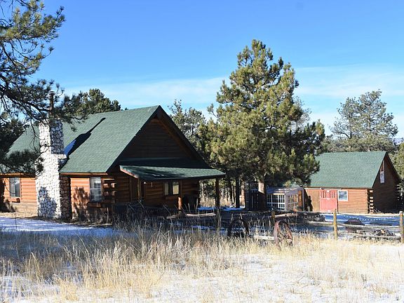This could be the perfect Christmas present, a charming FULLY FURNISHED LOG CABIN home on 10 WOODED ACRES! This cozy D Log Cabin is well-maintained and move-in ready for your mountain getaway! Open floor plan with large living area with a beautiful quartz rock fireplace and propane heat to keep you warm. The open kitchen and dining areas are great spaces to entertain guests. The main level has a sleeper sofa in the living room and upstairs is a loft bedroom with king-size bed. Outside relax on the covered flagstone patio and enjoy the beautiful views and private location without a neighbor in site! The spacious flagstone patio extends into the yard and is beautifully landscaped with native plants and flowers. Also included is a large 20 x 30 workshop complete with work benches, 220 volt electricity, water, and attached greenhouse. The shop and the loft area of the shop could be converted to guest quarters or studio. Property is 2 lots with one fully fenced for animals. Beautiful views with trees and pastures surrounding the property. Good year round access and located approx. 30 minutes from Westcliffe or Canon City. No HOA. This charming log cabin in the mountains awaits you!