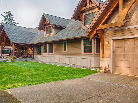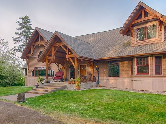 The great lodges of the national park system inspired this timber frame home in West Salem. The great room has soaring ceilings, Oak floors, Fir trim, and radiant floor heat. The englenook / library has a stone-fronted, fireplace, and library style windows. Kitchen features stainless Wolf range / hood, Sub-Zero refrigerator, Bosch dishwasher, and gorgeous granite slab countertops with chiseled edges. Cabinets are quarter-sawn oak as is the staircase.