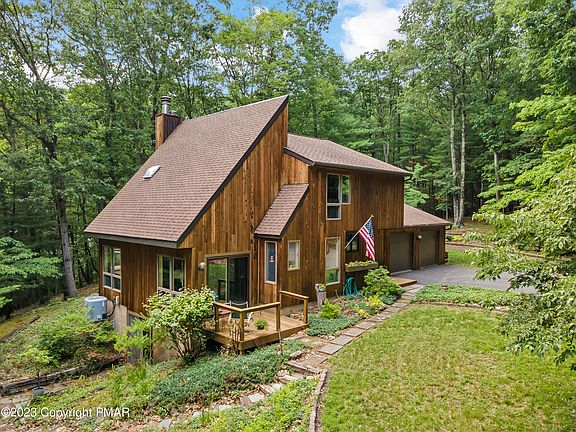 PRIVACY at its finest! This contemporary home with rare cedar siding on 9+Acres of natural surroundings will amaze everyone! Never offered for sale before! The first floor features a welcoming, sunken living room with vaulted ceilings, skylight and large windows bringing in plenty of natural light. Woodburning fire place and entrance to the side deck complete this great room. The dining room has sliding doors to the back deck. Next is the updated kitchen with a bay window and granite countertops. Stunning wooden staircase will lead you upstairs to a large loft overlooking the living room. Main bedroom with sizeable windows is pleasing and cozy. 2nd floor also features bathroom with double sink and a guest bedroom. Finished basement with a wood/coal stove, real, honey colored wood wall paneling and outside door gives a sense of warmth and comfort. The patio and two decks are calling for you to sit and enjoy the beauty of what nature has to offer, watch the wildlife and relax to the fullest. There is a seasonal stream in one of the valleys and many trails to enjoy on this true nature's oasis waiting for its admirer! Come visit and fall in love!