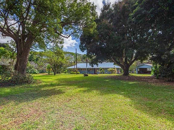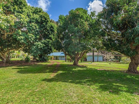 Harmony Farms in Keapana Valley is a classic ranch home on 3-acres with a free-standing garage, horse shed and guest house rights. The property, located on Hauaala Road, consists of pasture land roadside and a single-level classic residence sitting on a knoll above the pasture. The country setting with mango and monkey pod trees is reminiscent of old Hawaii. The home is very charming with lots of Sunset magazine details, including antique English stained glass windows along with hand-painted sinks and tiles in the bathroom. The garage is large and the horse shed sturdy. With the pasture land below, Harmony Farms may set up well as a horse property. Guest House rights are a big plus. Located in a rural area, you are only minutes from Kealia Beach and Kapa'a Town. Lots of natural splendor abounds at this country yet convenient setting.