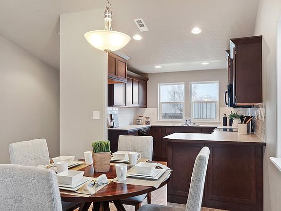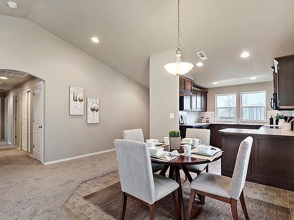 The 1388 square foot Dover proves that a mid-size home can be more than it appears. The front entry opens to a vaulted living area, including the light and bright kitchen, dining room and living room. The kitchen provides ample counter space and cupboard storage as well as a valuable pantry. The master suite is expansive, featuring a spacious closet and a dual vanity bath. Sharing the second bathroom are the two other sizable bedrooms ? one of which may be converted into an optional den. A laundry room is conveniently situated near the bedrooms and leads out to the garage. This compact plan is smartly-designed with comfort and efficiency in mind. * Photos and floorplan are of a similar home. Upgrades and selections shown may vary. Contact Agent for specific details.