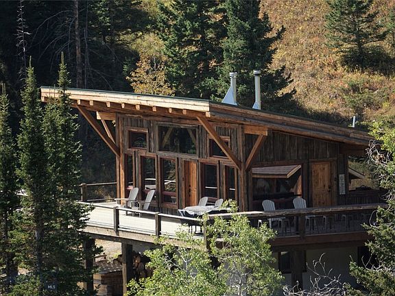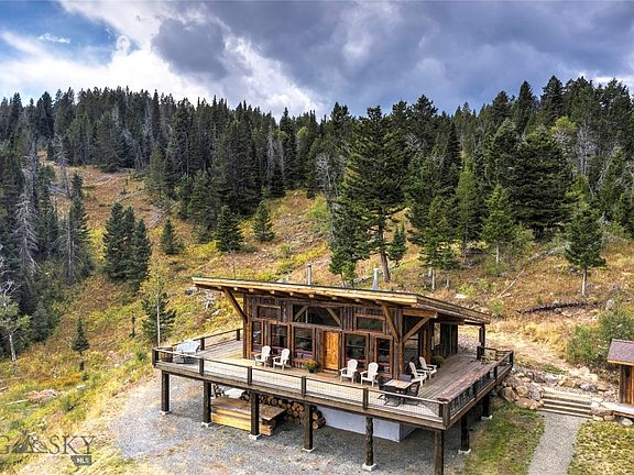 Gated end of the road privacy bordering 1000's of acres of BLM/Forest Service land. 20 acres split into two 10-acre parcels. Haypress Creek and springs provides great habitat for moose, deer, bear. Private access to Upper Haypress Lake and others for flyfishing. Off-grid quality-built 2 bed, 1 bath 2500sf cabin is mountain modern in design using heavy beams, timbers w huge wraparound deck. Daylight walkout basement and tall ceilings provide great natural light with views of Sphinx Mountain framed in the windows. Bedrooms/bath framed and partially walled, ready to install electricity. Plumbing in. Kitchen ready for propane frig, stove in. Wood cook stove and 2nd stove for heat. Spring water to cabin. Comfortable separate composting latrine. Private 2nd cabin guest cabin next to spring in fir grove. 45 min SW of Ennis, 30 min to Madison River. Private road w/locked gate for owners only, not maintained in winter but can be. Seller is upgrading with septic, well, solar power by May 2023.