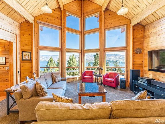 The Lake is calling you must go.... Huge lake views from this property with nice mature landscaping. 2,917 sqft home, 3 bed, Full bath & Two 3/4 baths, office/loft/studio, Open living areas both up & down. Tons of outdoor living off the main level deck w/ cable railings, and patio below. Easy access, attached 2 car garage, freshly stained exterior/interior, new carpet, several outdoor areas with lots of space for gatherings. Plus Year round deep water boat slip #14...