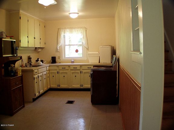 Don't let the outside fool you... most of the work is done inside! All new windows & heat system, plus lg liv rm, open kit and dining area, 5.6X9.6 area started for laundry & powder rm. Upstairs has 4 bdrms, and a completely remodeled bath with tile & glass shower - SEE PHOTOS! House needs outside work, and inside trim. Original hdwd flrs throughout needs refinishing. WALK UP ATTIC W/TONS OF SPACE, Beds Description: 2+BED 2nd, Baths: 1 Bath Level 2, Eating Area: Dining Area, Eating Area: Semi-Modern KT