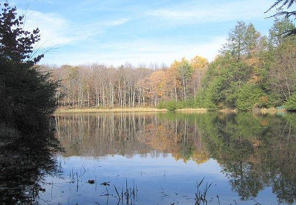 Pristine home site. Very private. Own your own 2+ acre spring fed lake. 14' deep in spots, very clean water, earthen dam in fantastic condition. Lots of mature hardwoods and Mt Laurel wildlife everywhere. SURVEY ON FILE ASK FOR IT- FREE- CAN BE PICKED UP AT MTNHME OFFICE CALL VALERIE PRICE. This is a fantastic opportunity. PIKE MLS #06-1729; LV MLS #242219.