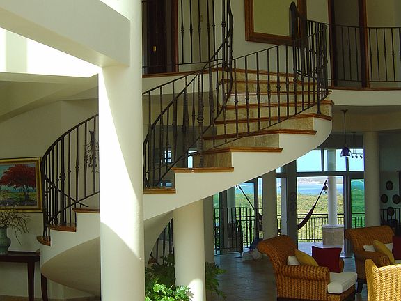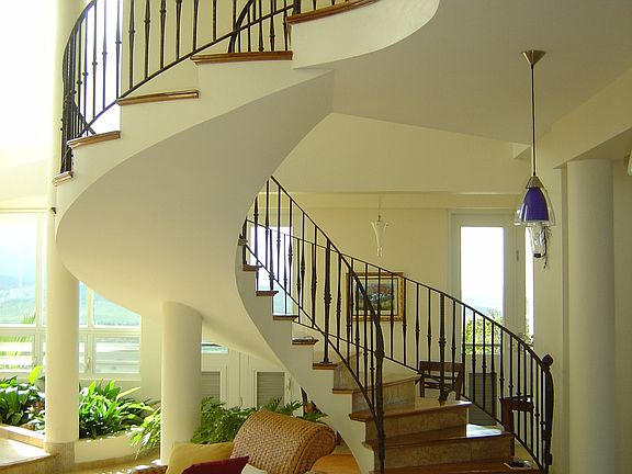 Residential touristic/vacation home located at hilltop of the gated community of Urb. Lindo Montes with an exceptional and breathtaking panoramic view that includes ocean views, Northeastern Forest Reserve (1mi), City of Luquillo beaches (4mi), El Yunque Rain Forest (5mi), Fajardo Lighthouse (5mi), Waldorf Astoria 5star El Conquistador Hotel, Golf & Spa (1mi) and nearby Islands. Reinforced concrete structure with pitched roofs with imported clay shingles. Typical ceiling heights at level 1 are 11ft and typical ceiling heights at level 2 are 14ft (pitched) The residential home has three levels with the following description per level: Ground Level: swimming pool with panoramic view, full bathroom, pump room, covered activity terrace and access to lawn (playground) Level 1: first class kitchen, home theater, media room, game room, dining room, open to above living room, indoor garden, half bathroom, access to covered terrace with panoramic view and custom interior spiral stair with caoba floor coverings for level 2 access. Level 2: five bedrooms with 14ft ceiling heights (pitched), each equipped with full bathroom including jetted tub, independent HVAC units, independent conduits for cable TV and closet. All rooms have panoramic ocean view. Common laundry closet and storage. Additional amenities: security doors and windows, 1500gal cistern, 180gal solar water heater, gated community, paved parking areas Accessibility: shops, theaters, restaurants, kayak, terminals to Vieques Island and Culebra Island, regional airport, Puerto del Rey Marina, Puerto Chico Marina