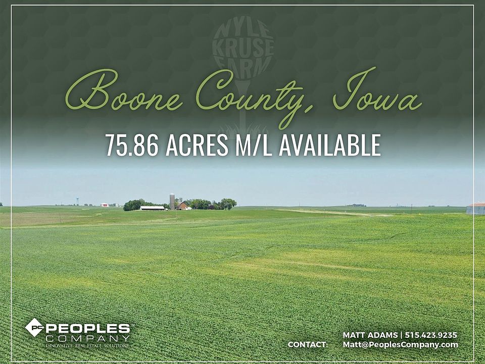A long-time family heirloom of the Kruse Family is being made available for sale to the public. Peoples Company is representing the sale of 75.86 acres m/l located four miles south of the town of Boxholm within northwest Boone County, Iowa. The farmland consists of 73.76 FSA tillable acres with a CSR2 soil rating of 76.6. There are several competing grain marketing options located nearby including ethanol plants located in Gowrie, Grand Junction, and Coon Rapids and a variety of grain elevators. Great access to the surrounding area with location along US Highway 169. Beaver Creek meanders through the middle of the property and would allow drainage from all corners of the farm. There is one drainage outlet that we were able to locate on the farm and it's found towards 170th Street. A 30-foot wide access easement exists along the western bank of Beaver Creek allowing the adjacent landowner to access their property (See Attached Easement Map). There is a farm lease in place for the 2020.