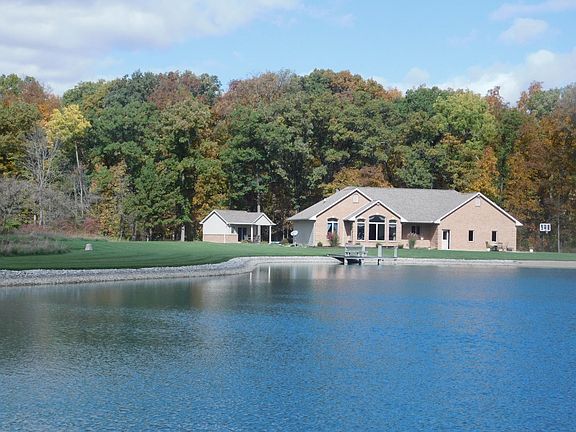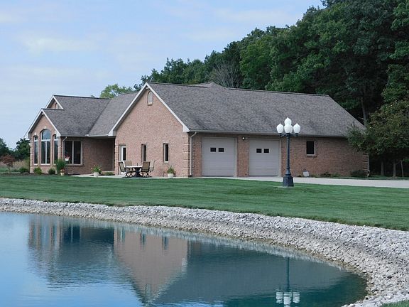Secluded on 14.15 acres,Beautifully designed 4 bed rm, 3 full bath Home , 2278 Sq Ft, Every room has a beautiful view. Kitchen with hickory cabinetry leads to back patio & heated pool & pool house 1/2 bath ,Great room w/ fireplace, Master Suite viewing the pool. Sun room vaulted ceiling . views 2 acre stocked pond. Full finished lower level w/custom entertainment man cave ,bar,heated floors,family rm,bed rm,bath.2 car garage with attic space and heated floors . Building 30x56 finished with heat,2 car workshop, Well cared for . So Serene, Much more to see call realtor Cindy Gustwiller 419-1050