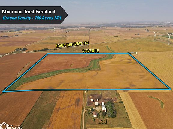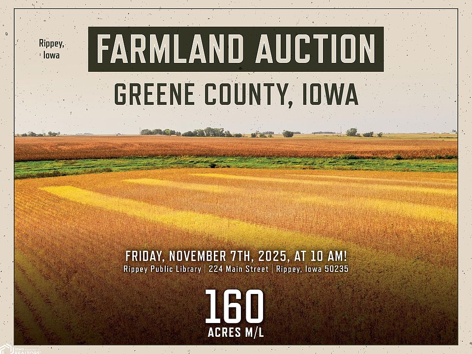 Greene County, Iowa Farmland Auction – Mark your calendar for Friday, November 7th, 2025, at 10 AM! I'm pleased to represent the beneficiaries of the Raymond E. Moorman Trust in the sale of their family farm located just north of Rippey, Iowa, and south of Grand Junction, Iowa in Greene County. The farm consists of 160 acres m/l and will be offered as a single tract. There are 147.39 certified FSA cropland acres with a CSR2 soil rating of 80.4 and prominent soil types of Clarion loam, Clarion-Storden complex, and Webster clay loam. Currently, an estimated 133.80 acres m/l were planted this year, with the balance discontinued in the Conservation Reserve Program (CRP). These acres are eligible to be farmed moving forward. Snake Creek runs diagonally through the tract, and access is from the west off V Avenue. No established crossings are in place to cross over the creek; however, there are driveways in the northwest and southwest corners that offer access to both sides of the creek. Additionally, a dead-end county road stops at the eastern boundary of the farm, offering additional access to the east side of the farm. This tract has multiple nearby grain marketing options with the Landus co-op in Rippey, Iowa, and the Louis Dreyfus ethanol plant in Grand Junction, Iowa. Located just east of Iowa Highway 144, the Iowa highway system is also within easy access. Visit our website for more info!