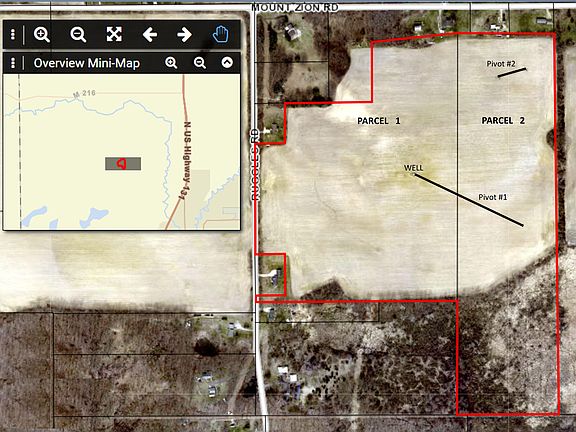 A very rare find in today's market! Almost 80 acres with approximately 64 acres irrigated tillable and 15 acres of hunting land. Irrigated land has 2 pivots served by 1 well and equipment comes with sale. Close to other agricultural land, short distance to US-131 and easy access road frontage. Good investment property with established lease for 2024 (could possibly be extended) or property could be converted to home/farm subject to zoning approval. *Taxes are based on 100% qualified agriculture exemption, buyer should satisfy themselves whether exemption is able to continue or not.