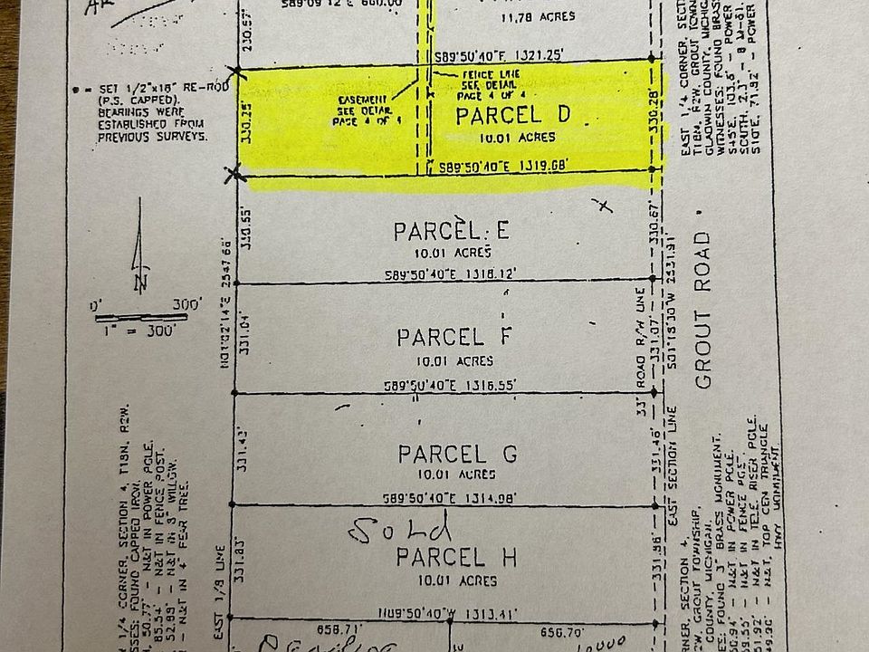 Seclusion? Place to park your camper? Come check out this Wooded 10 acres with 5 sheds already on the property. Deeded access from M-61 and 328 feet of frontage on Grout Road. Wooded with Pines, Maple, Cedars and many others. Great place for your hunting blinds. If you like to be secluded this is the property you are looking for.
