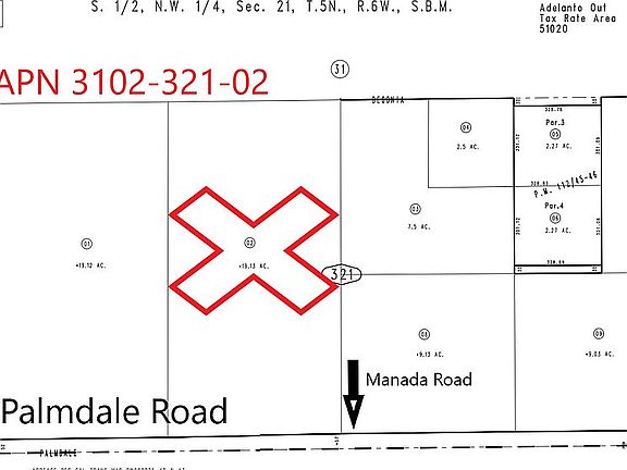 Commerical vacant land on the northwest corner of Palmdale Road/Highway 18 and Manada Road. Almost 20 aces! Approximately half of the lot is zoned commercial with frontage on Palmdale Road/Highway 18 and half the lot is zoned residential. For sale by owner but, willing to work with an agent with a specific Buyer. The next to this parcel on the northeast corner of Wilson Ranch Road and Palmdale Road/Highway 18 (same split zoning) is also available for sale and the two +/- 20 acre residential parcels "behind" these parcels are also available. You could own a total of +/- 80 acres!