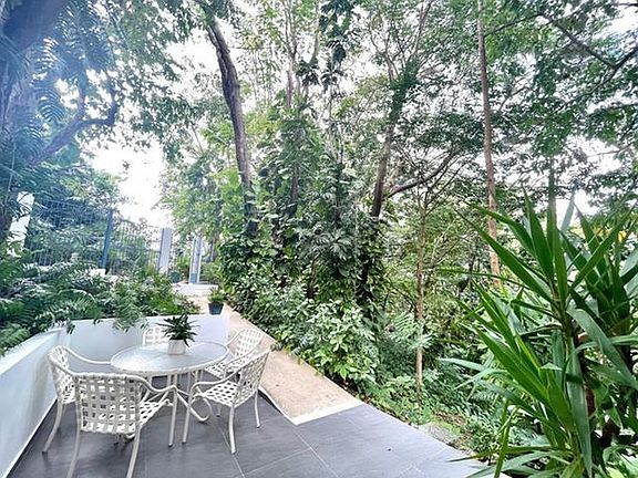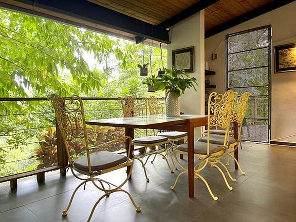 Tropical style residence nestled in Calle Vanda, a gated community located next to Alturas de Torrimar in Guaynabo. This 924 sf home is sited in a 2,937 sm lot. Features a living area with cathedral wood covered ceilings with spectacular tropical forest views, 2 bedrooms, 2 baths, open terrace, and double open car garage. Other features include master suite with doors that open to an outdoor terrace with breathtaking views of the lush vegetation, skylights, large windows that allow excellent cross ventilation, and insulated ceiling thus minimizing energy consumption. This home is unique, is a country home in the city. Minutes from San Patricio Plaza, Metro Office Park, and major highways..