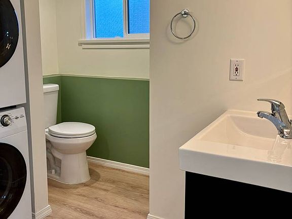 This new suite, perfect for one person, offers a private ground level entrance and an outdoor sitting area. The south-facing suite is well-lit with large windows, a generously sized kitchen and an open concept living room. The bathroom has a stall shower and a new stacking washer and dryer, and there are 2 ample-sized closets in the suite.