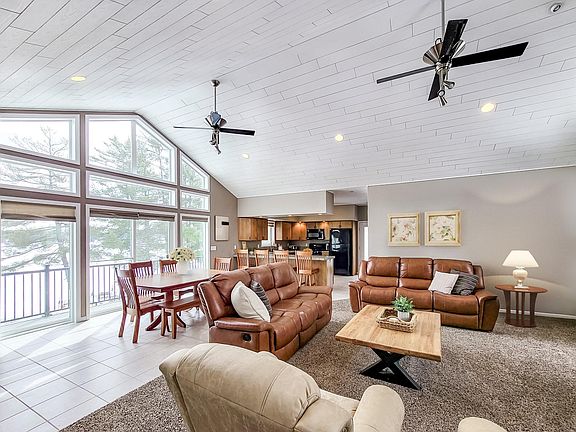 Experience effortless lakeside living on prestigious Lake Mary! This stunning, newer construction home on over an acre and a half features 173 ft of waterfrontage, private boat dock, lakeside outbuilding to use as seasonal flex space, and spacious deck. Enjoy breathtaking panoramic lake views from the soaring living room ceiling with expansive windows and wraparound deck perfect for entertaining. This modern 3 bedroom, 2 bath residence offers a maintenance-free lifestyle with natural vegetation in the front for minimal mowing, complemented by a finished and heated 3-car garage (with potential for additional living space). A separate Quonset outbuilding provides ample storage as a second garage (5 garage stalls total). Lake Mary, a 255-acre full-service lake is part of a 3 lake system connected to form the Hamilton Chain of Lakes, all just 20 minutes from downtown Iron Mountain. Live the lake life you've always dreamed of!