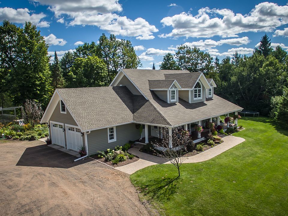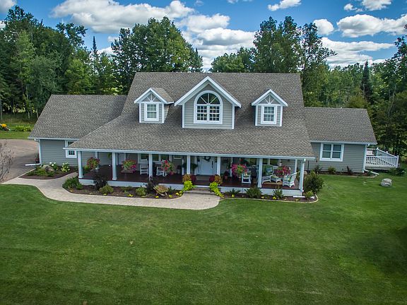 Beautifully constructed craftsman style home on 44 acres built by a local contractor as his private residence. No detail was overlooked. Highly efficient geothermal heating & cooling, spray foam insulation, private first floor master suit, custom cabinetry, covered front porch facing west, huge lower level rec room and so much more. 64'x72' pole building is fully insulated & heated with storage/shop space plus finished living quarters. Fencing for horses, zoned Ag, so hobby farm is welcome. Property borders county forest land on 3 sides. Private location just 10 min from Hayward. WATCH VIDEO!