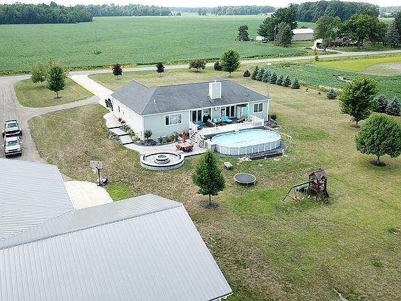 Custom Built Ranch Home - 3 bedroom 3 full baths w/ attached 2 car garage - Over 3,650 square foot of living space - 1,954 square foot of main floor living - Extra wide open staircase leads to an additional 1,725 square foot of living space in finished lower level - Inviting open floor plan with custom ceilings throughout the home - Kitchen design includes hickory cabinets, sile stone surface counter tops, walk-in pantry, Jenn-Air appliances include fridge, six burner stove top, dishwasher and side by side convection ovens - Master suite with huge walk-in closet, private bath with extra large jacuzzi whirlpool tub - 3 sets of French doors lead out to a huge 34 x 20 foot deck and pool - Gas stone fireplace - 2 x 6 framing with casement windows - Main floor laundry - Lower level is constructed with insulated concrete form system - Stamped concrete sidewalk leading to patio with outdoor gas fire pit and cooking area with granite counter top and outdoor fridge - WIFI Thermostat - New 2018 WIFI Garage door - On demand hot water heater - 12 x 20 Utility Shed Pole Barn has 36 x 56 heated shop area with 14 foot ceilings finished with steel walls and ceiling. Has heated cement floor with industrial epoxy finish. Pole barn also has an unfinished side which is 36 x 32, has (2) 12 x 10 ft doors , 14 foot ceilings, steel walls and ceiling and cement flooring.