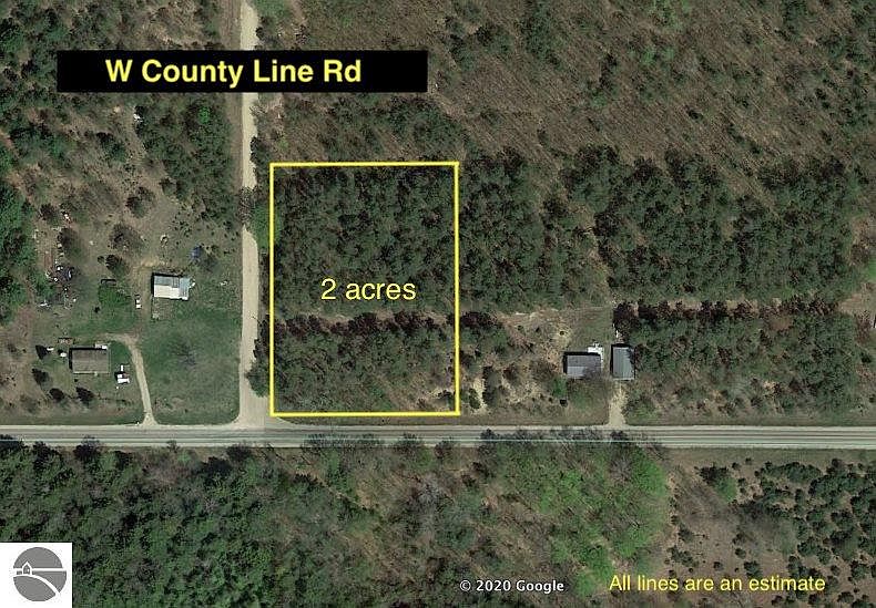 Store your toys in a pole barn on this parcel or build a small home in a quiet country setting on this 2 acre corner lot with a paved county maintained road. Gently sloping with tall pines and some smaller trees make for easy site development. Manufactured homes are allowable with 24 ft width and a 800 sq ft minimum. A private gravel road runs along the west line of property.