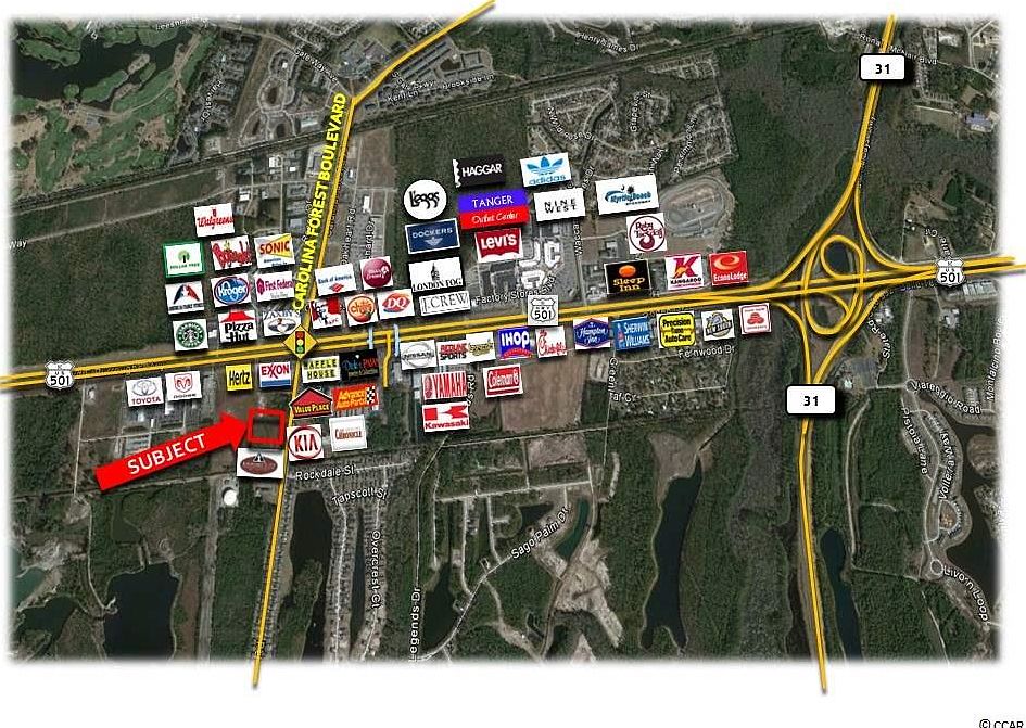 LOCATION: West Perry Road and Highway 501, Horry County, SC. DESCRIPTION: Approximately .97 Acres, (42,253 Square Feet) Approximately 160' +/- Frontage on West Perry Road Approximately 225' +/- on Waters Drive