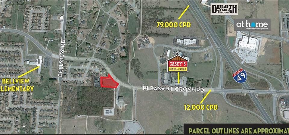 3 parcels totaling 1.71 Acres on W. Pleasant Grove. Near residential developments and many commercial users. High visibility. Frontage on Pleasant Grove. Water & Sewer on site. Easy access to I-49. Zoned R-O. 296' of frontage.
