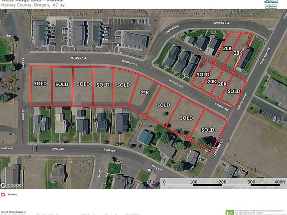 Newest subdivision in the Burns/Hines area. Close to high school with paved streets & sidewalks. All underground services to each lot. 2 - .09 acre lots for $20,000 (located on W Ridge St & Juniper St) 1 - 0.21 acre lots for $25,000 (located on W Ridge St)