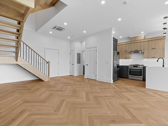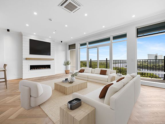 Modern, chic design describes this brand new penthouse unit on the 6th floor of Cove View Towers. This stunning unit has captivating views of the Thames River and Mohegan Sun as soon as you step into the unit. The luxury vinyl herringbone floors and the white oak open staircase will grab your attention an you begin your tour. The two tone, custom built cabinets and the Quartz counter with the waterfall edge is enhanced by the high end SS appliances. The sleek modern fireplace with wood mantle is a focal point as well as the floor to ceiling wall of windows in the living room. Sit out side on your 24' long balcony with your morning coffee and just take in the amazing views, its a great way to start your day. The primary suite boasts a beautiful full bath with a dual sink vanity with Quartz counters and a walk-in tile shower with glass doors and a rainfall shower head. The custom designed spacious walk-in closet is a plus to this unit. The second bedroom also has a private full bath with glass shower doors. Other features include central air, crown molding on the 1st floor, half bath with linen closet on 1st floor, custom trim work, 2"thick doors, all matt finishes. Quality craftsmanship is evident throughout this unit, attention to meticulous detail will impress any buyer. This unit comes with a parking spot in the garage, a community room for entertaining, a terrace to sit outside and relax by a fire by the firepit, a fitness room and movie theatre. This absolutely beautiful upscale unit is a must see to appreciate it, its' design, quality, craftsmanship will make you want to move in today.