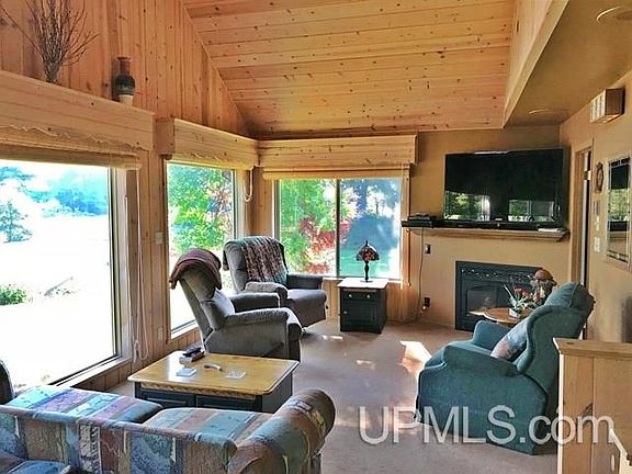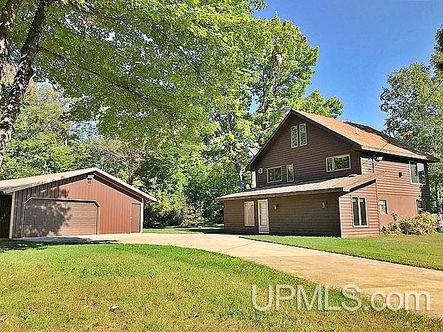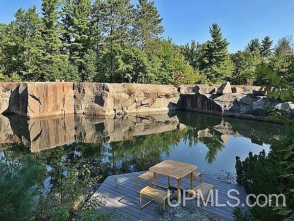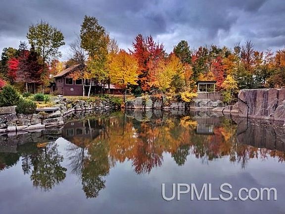 Enjoy a spectacular view overlooking your own private quarry! Well maintained 3 bedroom, 4 bath three story home perched upon the beautiful clear waters of a quarry pond, which is approx 3/4 of an acre and 20' deep, stocked with bluegills and perch. Features main level KT/DR addition, family room, 2 BR's and 2 baths. 2nd level offers a warm and inviting LR with 2 gas fireplaces, cathedral ceiling, and sliding doors to the deck overlooking the quarry. 3rd level BR w/bath. The home comes complete with most of the furnishings if needed. Large 30' x 58' four-car garage w/workshop and walk-in safe. Partially paved driveway. A quiet and serene location on 53+/- wooded acres with the Wausaukee River running through it. An exceptional recreational tract of land with easy year around access. This is the way ‘up north' was meant to be experienced! It's truly a one-of-a-kind property and this home won't last long on the market!