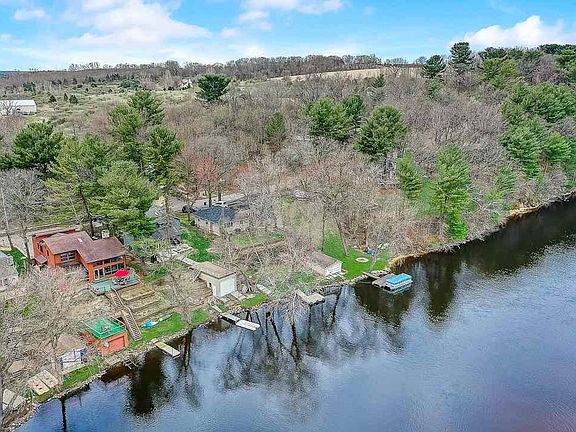 Lake Wisconsin Custom Built 2 story Contemporary home on quiet dead end road with wall of windows to Lakeside to enjoy the beautiful views, main level has updated kitchen, living room with stone fireplace & dining room all with views of the water, upper level has master suite w/ walk thru bath, jetted tub, custom shower, and second bedroom, main level 3rd bedroom with stone fireplace, Lower Level is partially finished with great room and office/den, plenty of space to entertain on the multi tier decks overlooking the water, boathouse with marine rail & deck on top for more entertaining space, oversized single car attached garage, quick 30 minute commute to Madison & 30 minutes to Wi Dells.