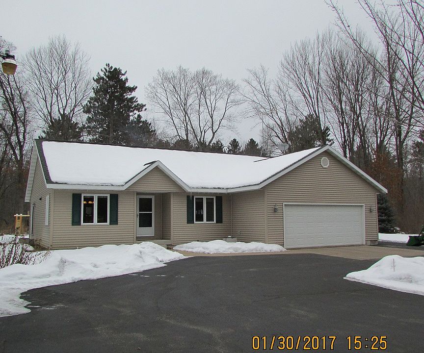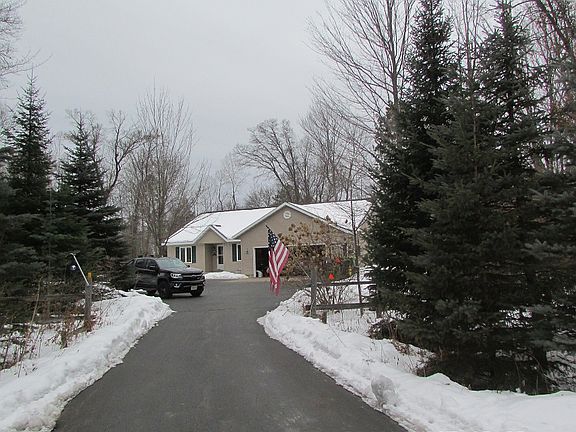 This beautiful Custom built home is nestled on 6.74 ac. on a quite cul-de-sac..town Rd. Features: Three good size bedrooms and a master suite. First floor laundry w/utility sink, oak trim, six panel doors & hickory floors. Plenty of oak kitchen cabinets, island and a breakfast bar. A large pantry, dishwasher & appliances. Spacious home with a open concept floor plan, vaulted knotty pine ceilings that carry into the great room with plenty of natural light. There's a freestanding soap stone wood burning fireplace, A/C and in ground sprinkler system. French doors take you to a concrete patio and back yard. The basement is plumbed for a 3rd bathroom and ready for your own plans. There's a attached 2 car garage along with a 24 X 30 outbuilding that offers room for all the extra toys!