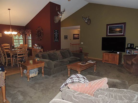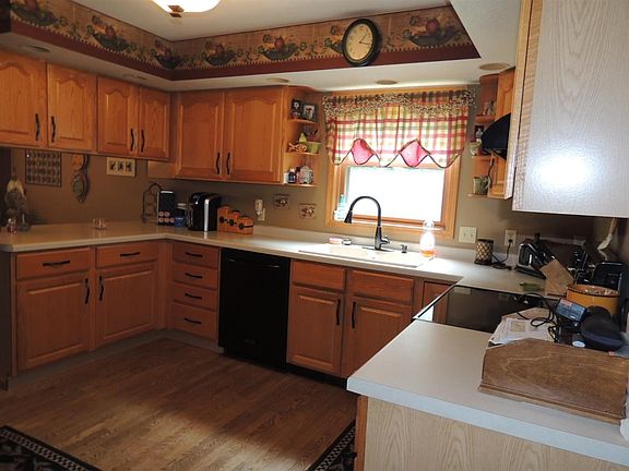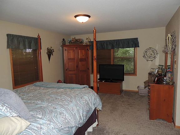Wonderful privately located home only 1.5 miles from the city limits. Large master bedroom, bathroom and closet, and large 2nd bedroom with walk in closet. Main floor has spacious rooms with hardwood flooring, including living room with wood fireplace, dining room, kitchen with dinette. Main floor laundry and half bath and back entry off the attached 3 car garage. Lower level has a spacious rec room and large bedroom. Very nice back patio area off the living room.Newer metal roof! ALL this only a minute or two from town. COME SEE!! **3rd Bedroom would be with the addition of an egress window to basement bonus room.
