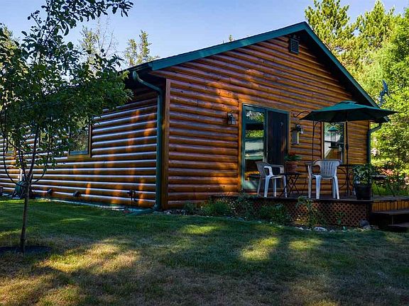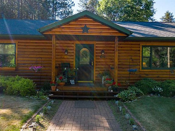 Charming log home nestled privately in the woods, approx 3.72 acres (per assessor). Enjoy picturesque views of the outdoors & wildlife. Open concept kitchen/dining/great room with tongue & groove ceilings and patio doors leading to a spacious deck and park-like setting. The kitchen offers rustic Hickory cabinets and center island. A cozy gas fireplace in great room. Master Suite with jetted tub, walk-in closet. Open log stairway leads to a finished LL with walk-out. Blue spruce, apple trees and perennials. Located near lakes & steps from the ATV Trails.